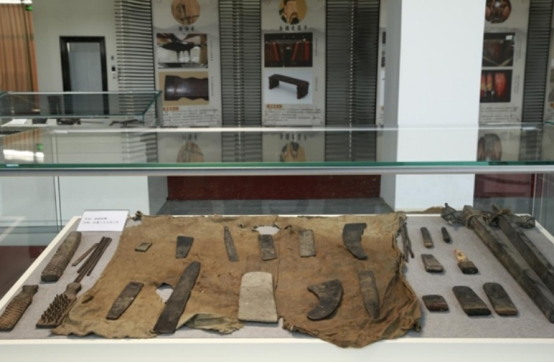 展廳正中,矗立著一尊高大的華夏漆祖——俞伯牙雕像。